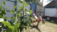 Blonde Outdoor Hammock Stimulation Cunt Pussy Masturbation In the lush backyard of a serene suburban oasis, an alluring blonde woman stands poised atop her hammock, swaying gently with the tender embrace of nature around her.Draped in a tantalizingly sheer bikini that showcases every curve and contour of her voluptuous body, she gazes upon the verdant landscape that spreads out before her - a living tapestry of her dreams made real.With her lips parting into an inviting grin, the blonde woman's fingers dance between her legs, teasing at the folds of her steaming pussy, delving ever deeper as she loses herself to the primal desires coursing through her veins.Every touch, every caress is a testament to her unbridled passion, her fingers moving in tune with the rhythm of the world around her.As she indulges in her secret fantasy, an image begins to take form before her - the strapping figure of a man, tanned and muscular, who stands poised to claim the willing prize that is offered before him.His hands move with an urgency that echoes her own, fueled by their shared hunger for each other as they explore every inch of one another's bodies.With a climax as intense and all-consuming as the blazing sun above them, the blonde woman succumbs to the sweetest release, her entire being shaking with uncontrollable spasms that echo through the serene backyard, leaving no doubt as to what fantastical interlude she has just partaken in.As her breathing slows to its natural pace, the alluring blonde opens her eyes to find herself alone upon the hammock, the reality of the world around her reeling into focus.The taste of desire lingers upon her lips, an ever-present reminder of the ecstatic adventure she has just embarked upon.Thus, with each swaying motion of the hammock and the caressing touch of a tender breeze, the blonde woman recollects her sensual escapade - a tale woven from the very fabric of the lush backyard oasis that now serves as a monument to her insatiable desires.