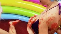 Lesbians Enveloped in Erotic Pleasure Blonde and Brunette Unite in Red Lubrication